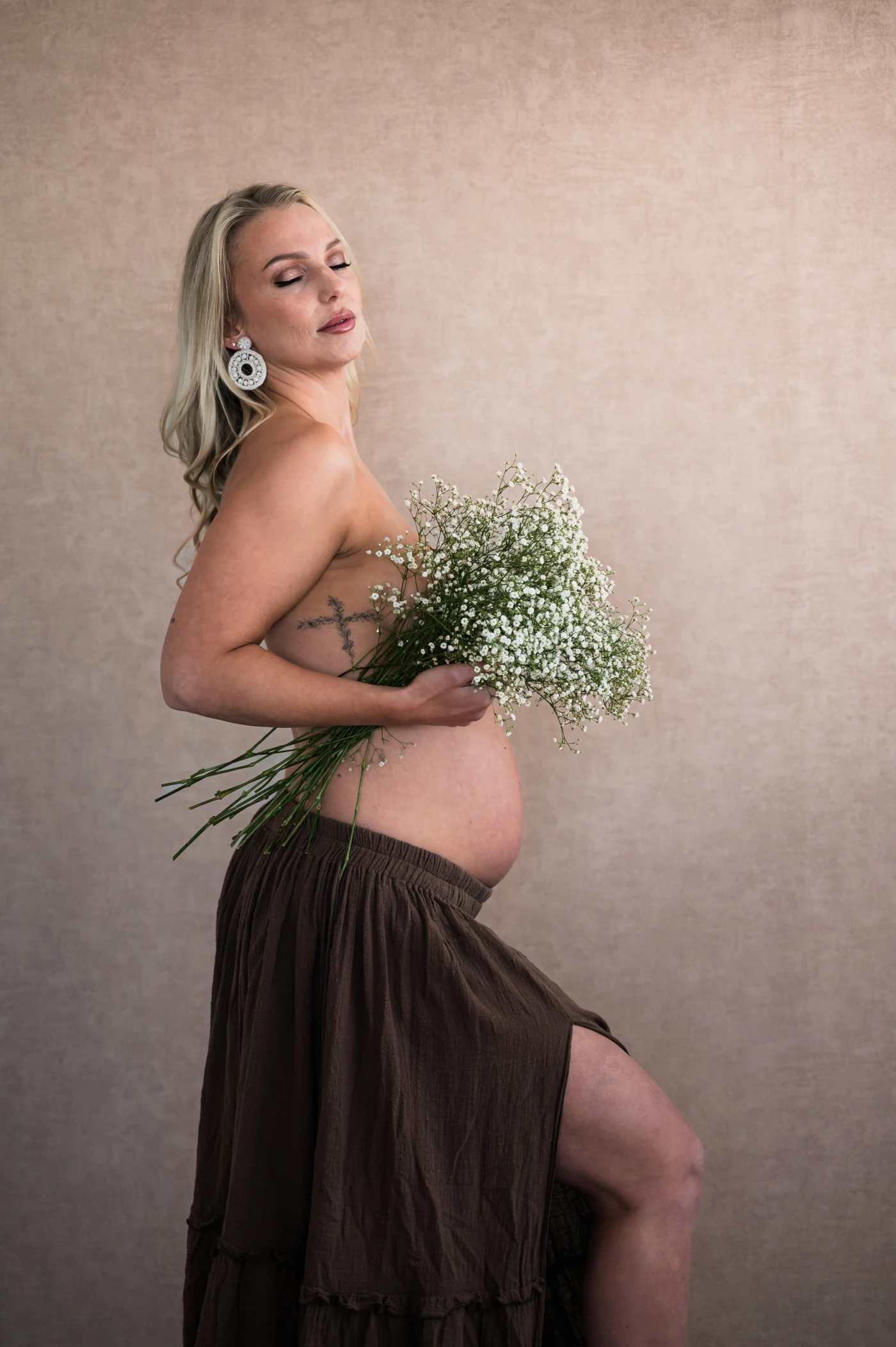 116th CollectionA serene and powerful portrait that captures the raw beauty of pregnancy. The pose radiates confidence and softness, celebrating the strength of a woman's body as it nurtures new life. A quiet yet striking tribute to motherhood.